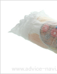 わきの部分です。 わきは破れるようになっています。ステッチを破れば、手を汚すことなく、簡単に脱がすことができます。 |