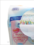 3.「消臭機能付き吸収体」採用! おむつに「消臭機能付き吸収体」が採用され、使用後の気になるニオイも軽減します。 |