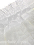 太もものギャザーです。 モレ対策として、内側の「うんちガード」と合わせ、脚まわりはやわらかい二重構造になっています。 |