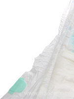 | 「お知らせサイン」付きです。 おむつの表面中央に3本の黄色い線が入っています。この線が青緑色に変わったらおむつ替えのサインです。 |
