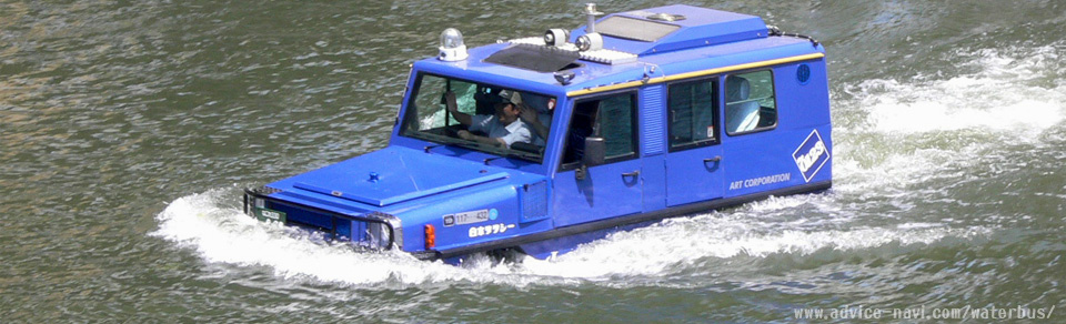 世界初登場!スクリューを備え、陸上の運航はもちろん水上も航行できる、大阪だけの名物水陸両用観光タクシー。